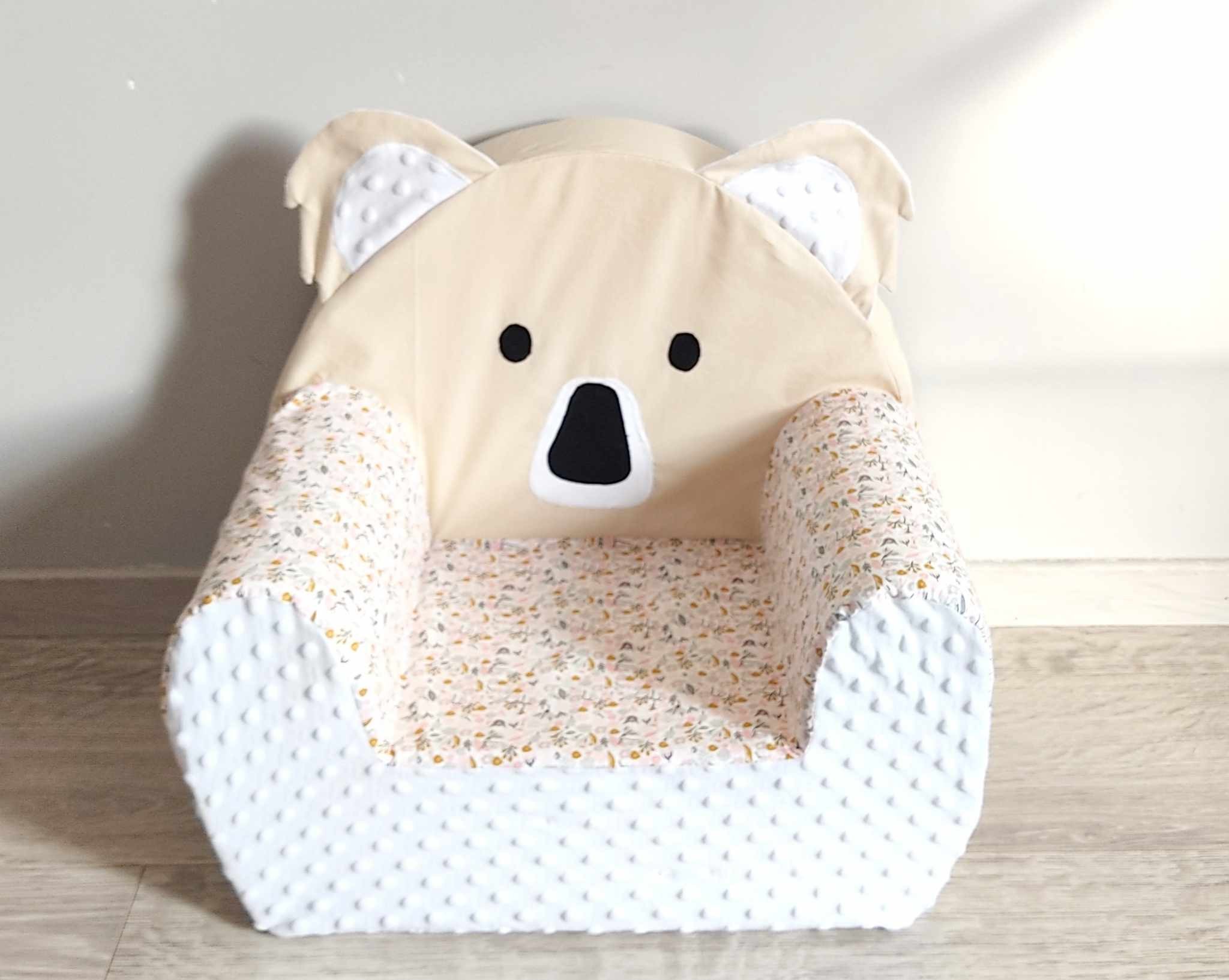 Le dossier de la housse est en forme de tête de koala. Les yeux et le nez sont appliqués pour une résistance maximale.